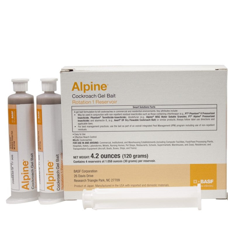 Alpine Cockroach Gel Bait Rotation 1 Reservoir is labeled Reduced-Risk by the EPA.